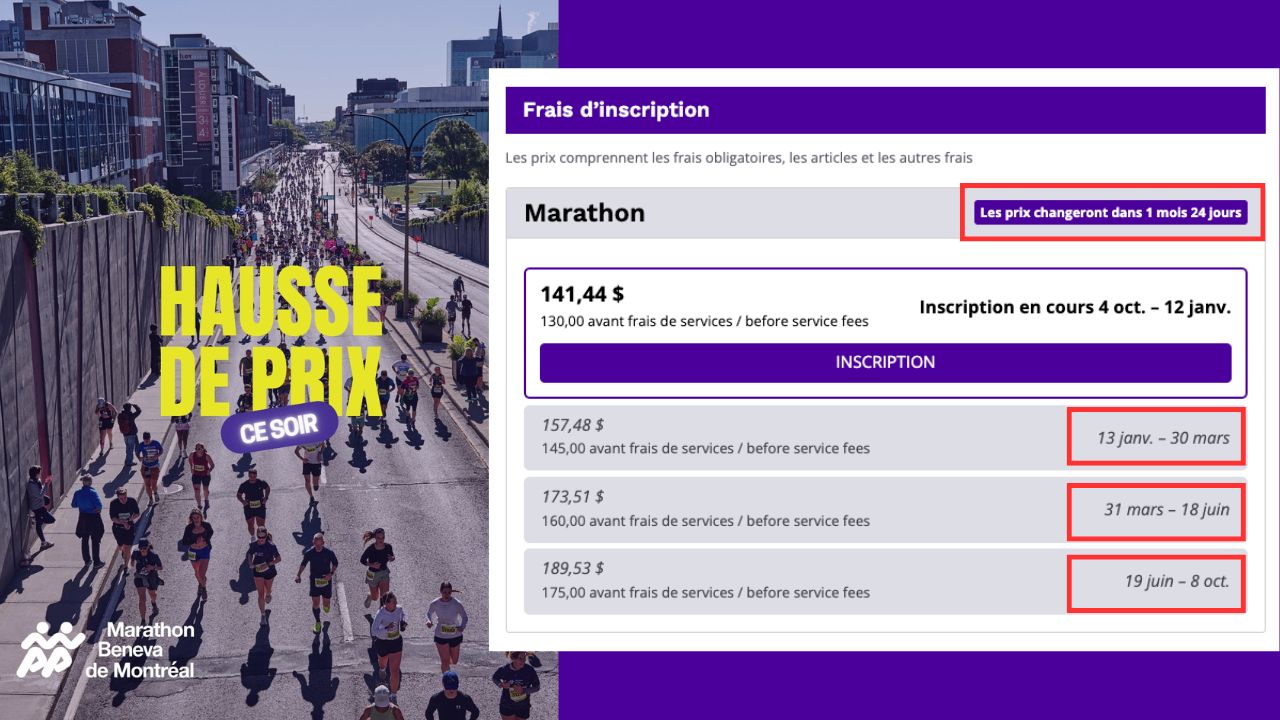 L'organisation a mis en place une stratégie de prix par paliers pour leur événement annuel. Plus tu t'inscris tôt, moins tu paies. Le prix augmente à chaque date limite. C'est transparent, prévisible et ça récompense l'action rapide.